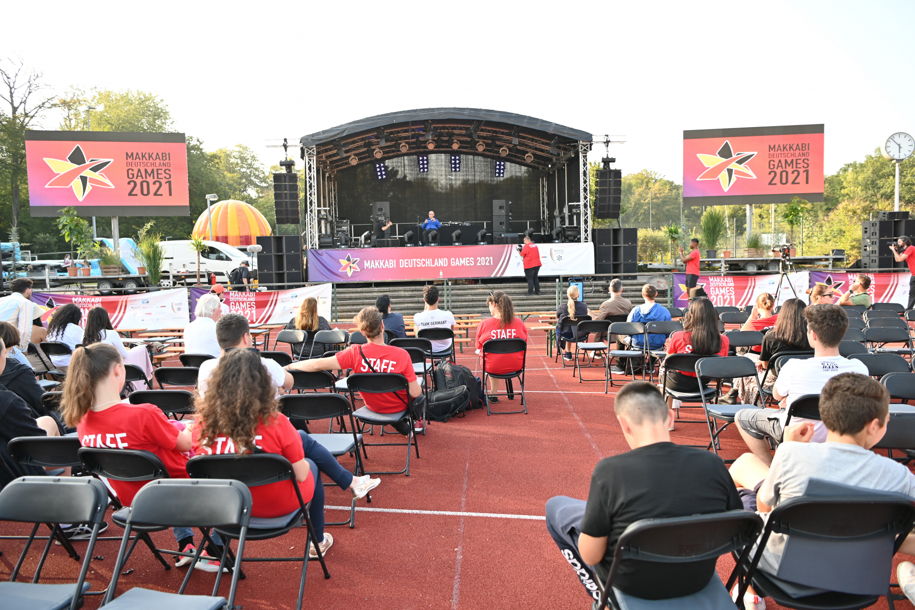 Bei den MAKKABI Deutschland Games traten über 650  Sportler:innen vom 2. – 5. September im Schwimmen, Futsal, Bridge, Basketball, Beach-Volleyball, Sportschießen, Fechten, Segeln, Schach, Tischtennis, Tennis, Radsport, Triathlon, Gewichtheben und Kampfsport in den Kategorien Juniors, Open und Masters in Wettkämpfen gegeneinander an. Dass die Eröffnungsfeier der MAKKABI Deutschland Games das größte jüdische Event der letzten Jahre in Nordrhein-Westfalen war, erfüllt uns mit riesiger Freude. Im Rahmen des Jubiläumsjahres „1700 Jahre jüdisches Leben in Deutschland“ und vor dem Hintergrund des zuletzt steigenden Antisemitismus in Deutschland und Europa waren diese Spiele ein starkes Zeichen des selbstbewussten und offenen Judentums in Deutschland und ein lebendiges Symbol für Vielfalt, Zusammenhalt und Freundschaft über die Grenzen von Religionen und Nationalitäten hinweg. Das Rahmenprogramm bot am Rande der Wettkämpfe verschiedene Workshops mit Speaker:innen wie Shaul Ladany oder dem Olympiabotschafter und Politiker Ralf Bockstedte, sowie den ersten jüdischen Hindernislauf in Europa – den 321 MAKKABI-Run. Darüber hinaus fand am Freitagabend die mit über 700 Teilnehmer:innen größte Schabbat-Feier Nordrhein-Westfalens statt.